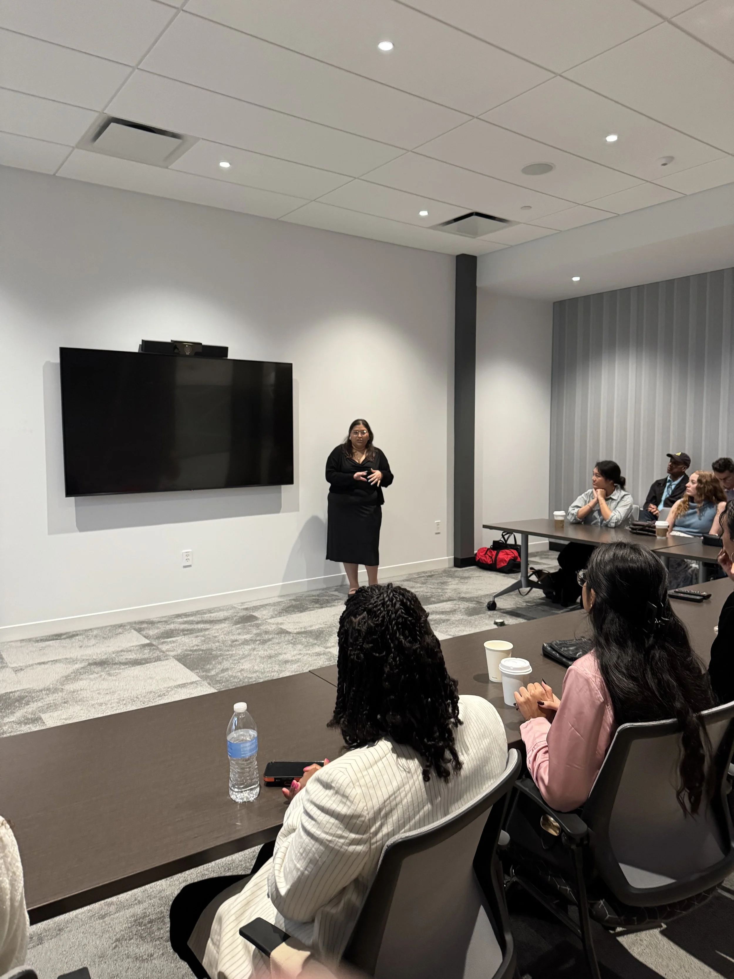 After the tour, the meeting was held in one of the AJC’s private rooms. Each Chips Quinn Reporter introduced themselves to the Board, sharing where they work, their reporting beat and what they hope to gain from the fellowship. Several reporters spoke about their commitment to covering underrepresented communities, while others shared how shrinking newsroom resources have challenged their development as journalists. Board members listened closely, offering perspective on sustaining a career in a changing media landscape. Several Board members were surprised by the challenges the young reporters described, while others found the conversations deeply familiar, recalling their own early experiences in journalism.